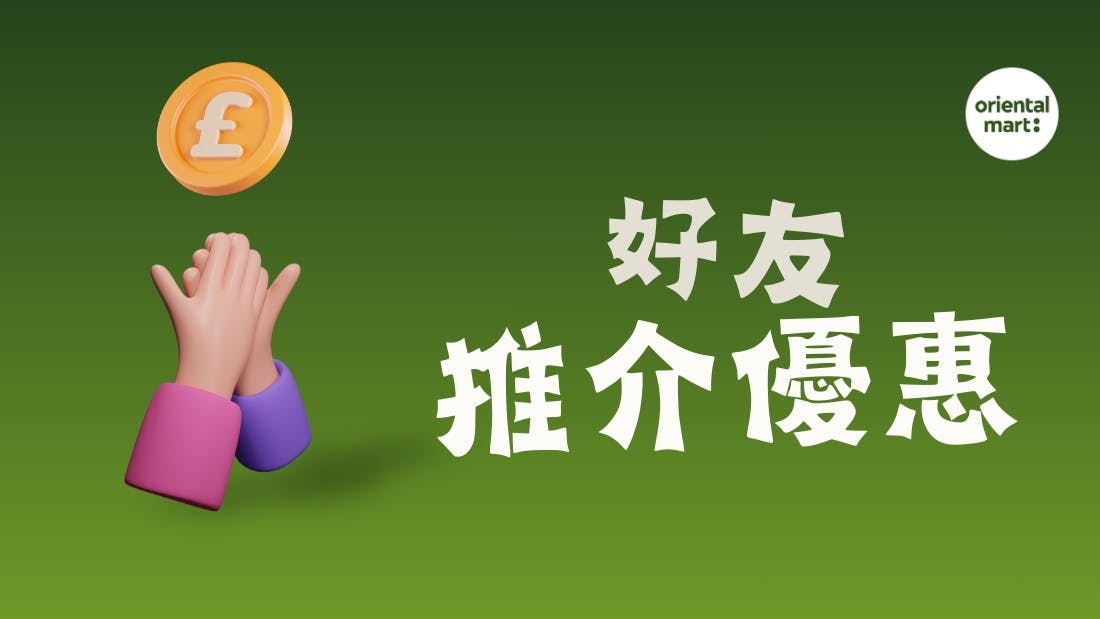 1. 好友推薦 £5折扣券於優惠期間 (20/9 - 20/10) 消費滿30即可使用。優惠期後,最低消費需滿£50才可使用好友推薦折扣券。